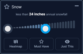 And about that fourth important piece of information... (4) The box color is the last part. In the first case, 183 inches of snow is WAY outside the 24 inch limit you wanted so the box color is white - a poor match.