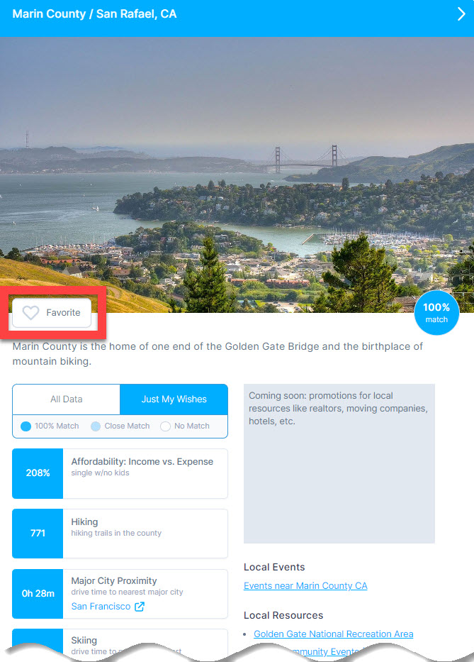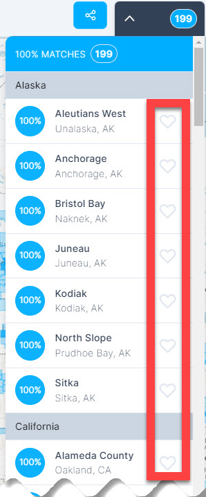 When you find a county that captures your attention, simply make it a favorite by clicking the heart (❤) icon. When you do, you tell us to find more information about this county and alert you when we do.