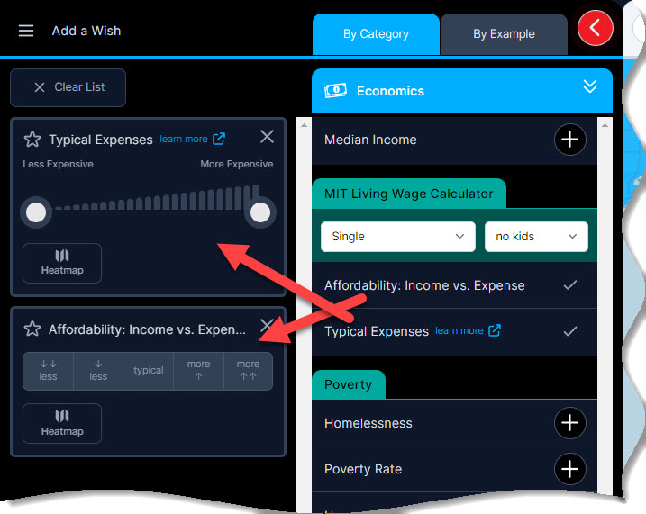 5. When you activate either the "Affordability" or "Typical Expenses" wishes, they will have your family situation imbedded in their calculations.