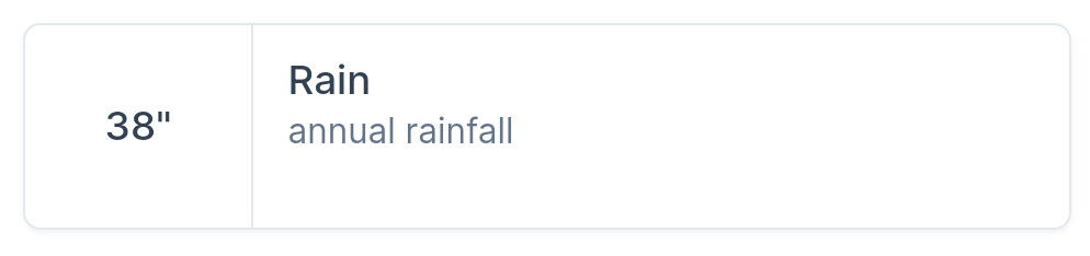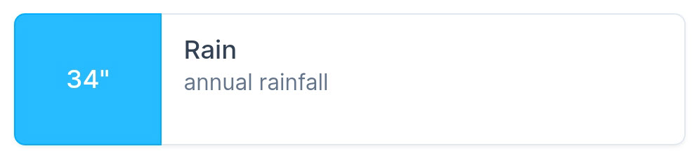 How much is too much or too little rain? One approach is to click on your current home county on the map and see how much rain you experience there. The county profile page will show you how much rain that county receives each year. If the number displays with a blue background (see the top image below), your county is within your acceptable range. If out of your range, it will have a white background (see the bottom image below).
